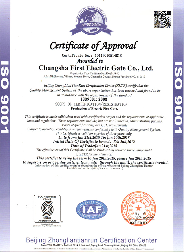 ISO9001質量管理體系證書1