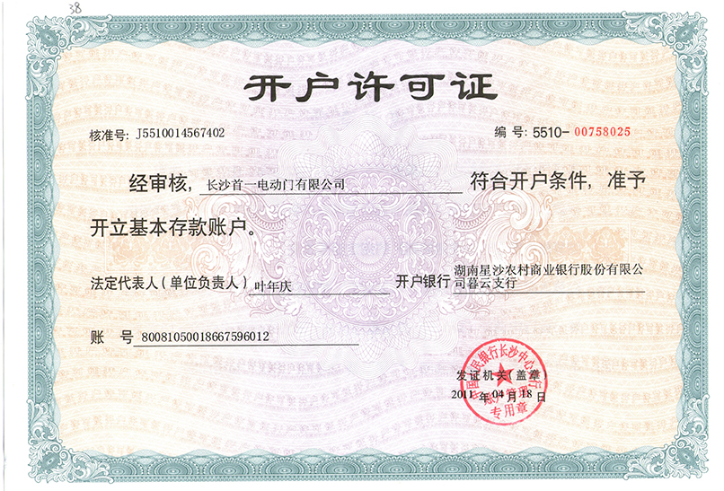長沙首一電動門有限公司(營業執照代碼:9143010357027453X4)