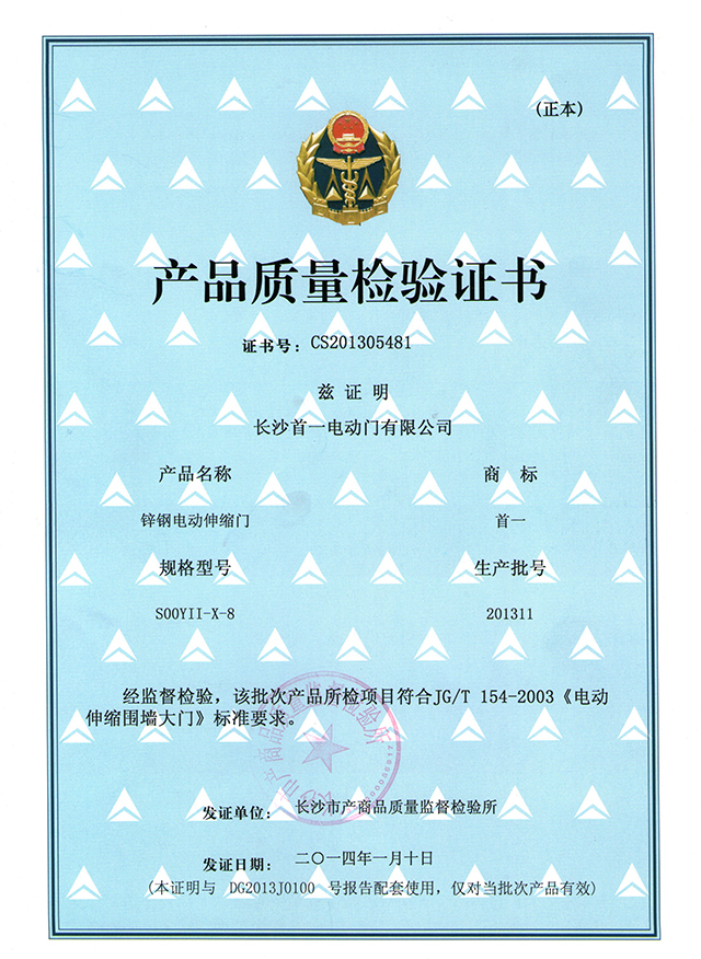 伸縮門質(zhì)量檢驗證書