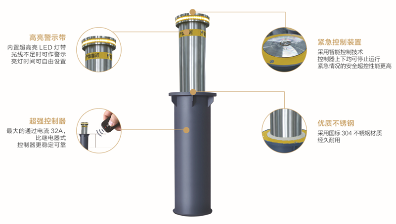 1、智能升降柱還具備很強大的感應能力,當有車輛強行通過時,能升降柱會自動感應到,然后拉伸起來,攔截這些車輛。